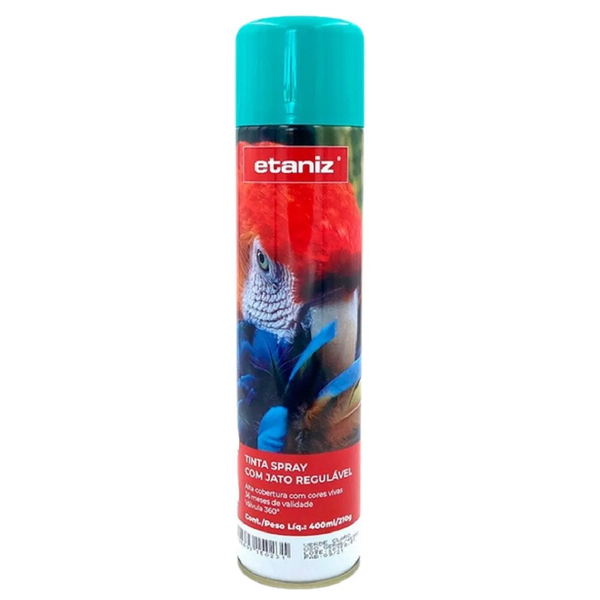 A tinta spray para uso geral na cor verde claro Etaniz conta com válvula 360° que possibilita mudar a direção do jato de acordo com a superfície de aplicação, sendo horizontal ou vertical, ou jato neblinado de acordo com a necessidade.